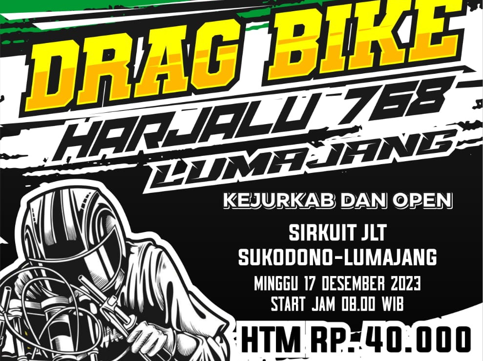 Lumajang – Ikatan Motor Indonesia (IMI) Kabupaten Lumajang menggelar Drag Bike Harjalu 768 Lumajang. Kegiatan tersebut juga bagian dari Kejuaraan Kabupaten (Kejurkab) IMI Lumajang. Drag Bike akan digelar pada hari Minggu 17 Desember 2023 di Sirkuit…