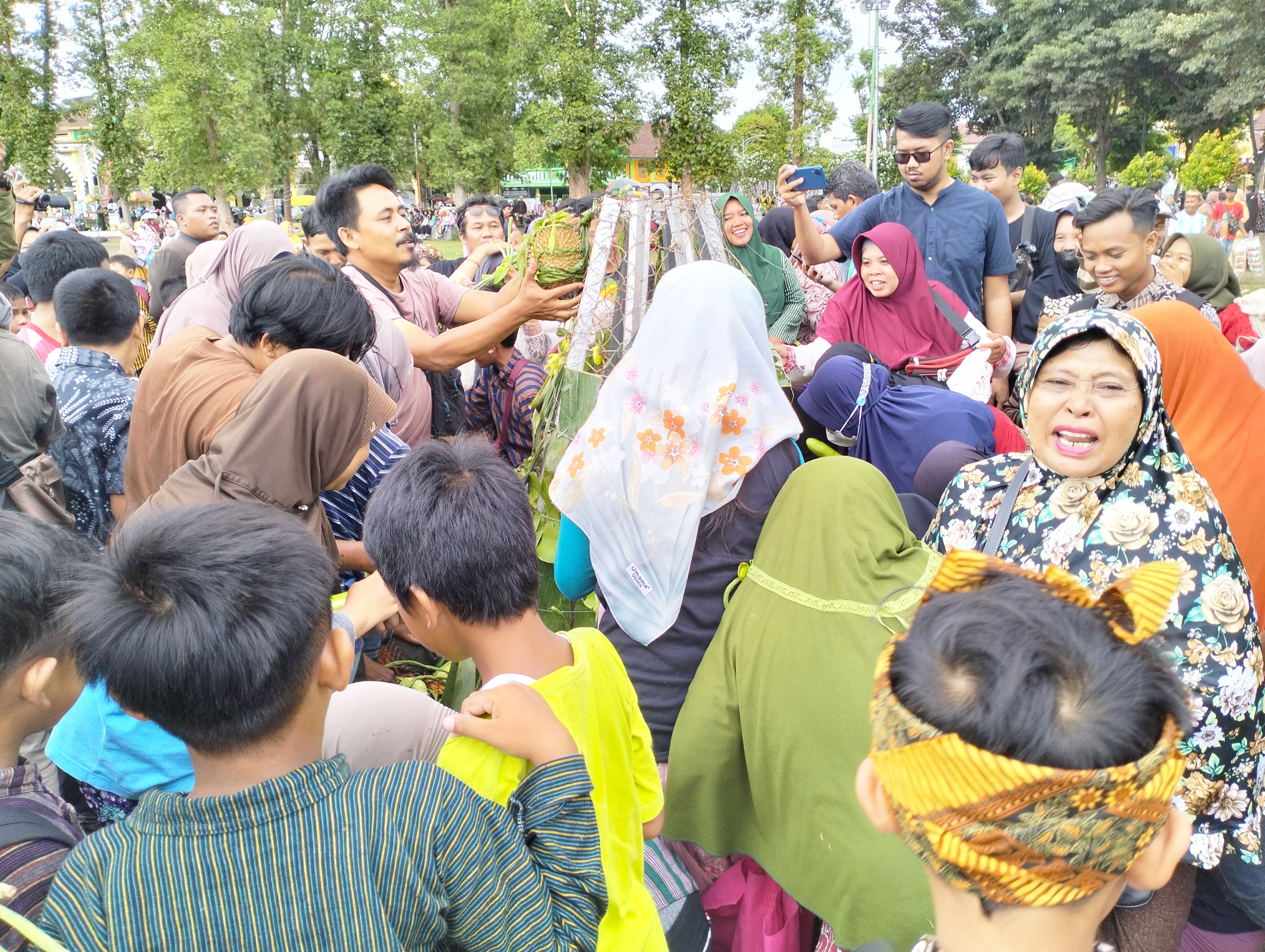 Ratusan warga berebut 4 gunungan hasil bumi di…