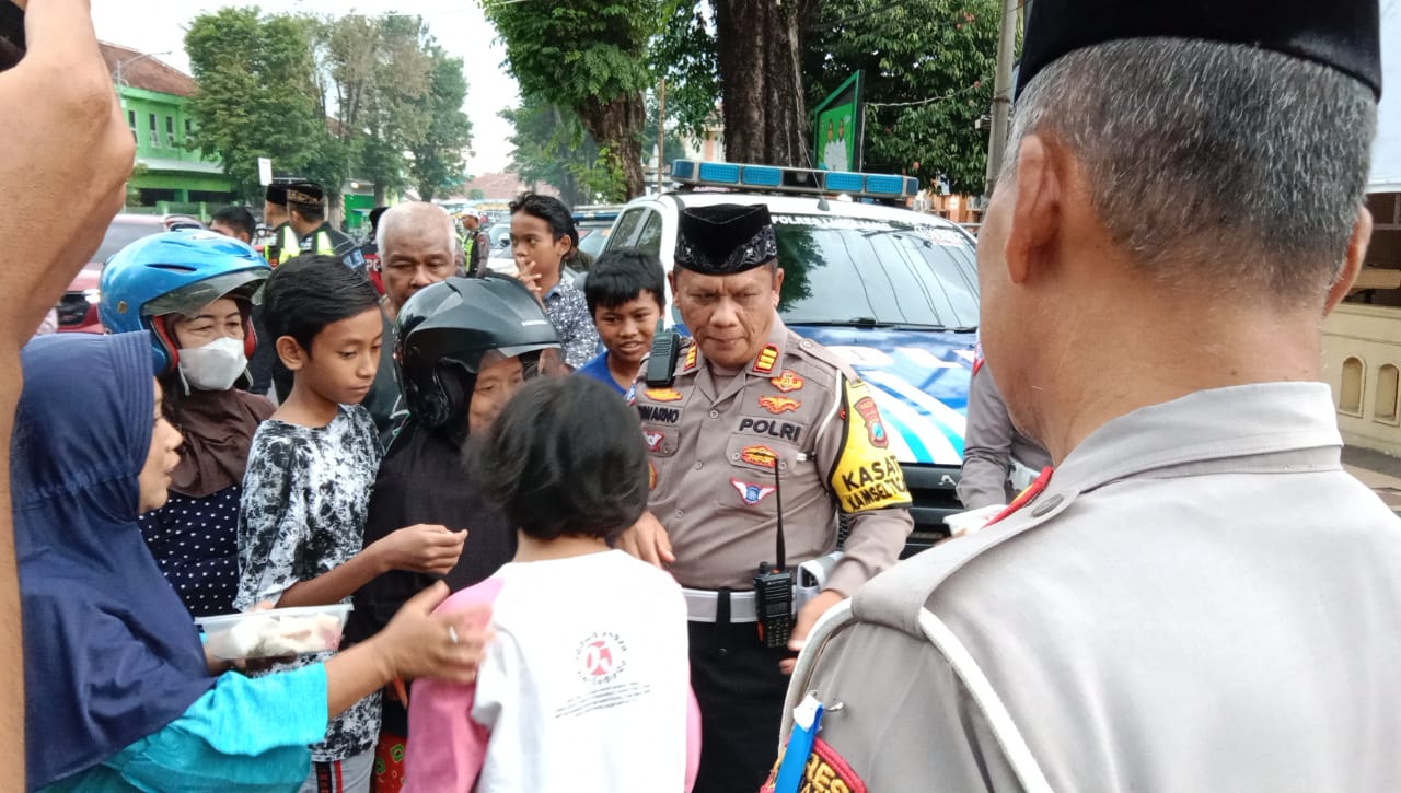 Lumajang – Satlantas Polres Lumajang bagi takjil gratis untuk pengendara di jalan jelang buka puasa di depan Mapolres Lumajang Kamis, (14/3/2024).