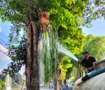 Lumajang – Tim Ruang Terbuka Hijau (RTH) Dinas Lingkungan Hidup Kabupaten Lumajang melakukan penyiraman bunga anggrek tanduk rusa, yang merupakan salah satu flora yang menghiasi Alun-alun Lumajang.